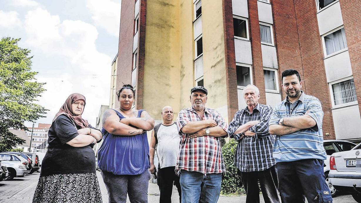 Neben Santijana Alioski (2.v.l.) und und Jasar Ajvazoski (3.v.r.) zeigen nun immer mehr Mieter offen ihren Protest. | © Susanne Lahr