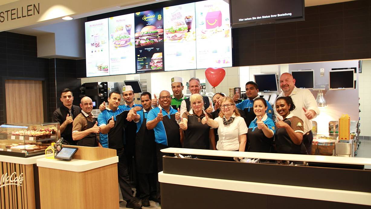 Das Team des McDonald's-Restaurants am Jahnplatz freut sich, nach vierwöchiger Umbaupause wieder Kunden begrüßen zu dürfen. | © McDonald's Verwaltung Heidrich