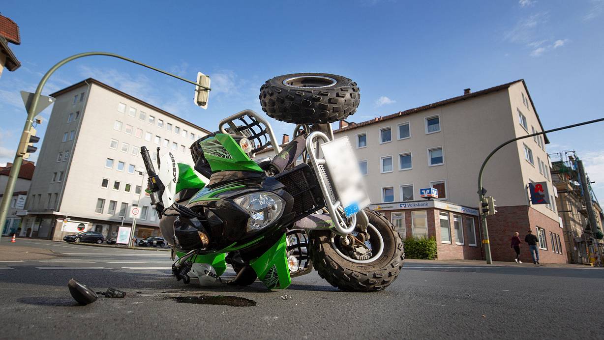 Eine Linksabbiegerin übersieht einen Quad-Fahrer. Der Mann trifft mit seinem Gefährt das Heck des Autos und stürzt.