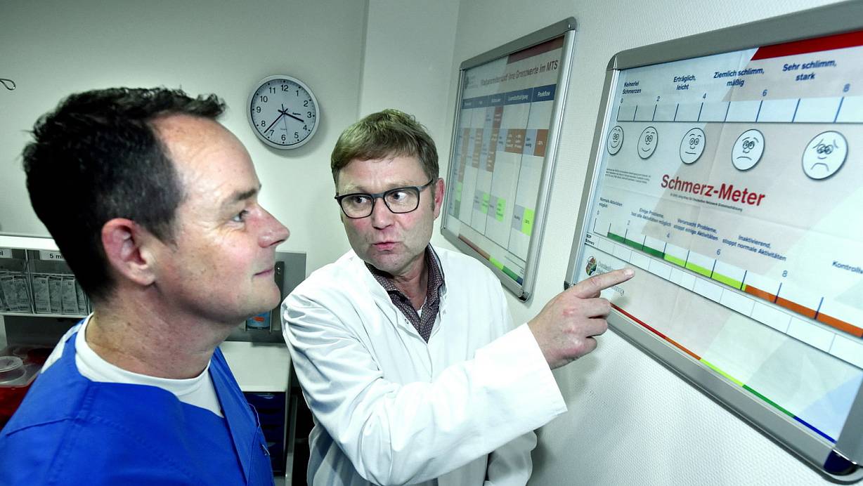 Chefarzt Hans-Werner Kottkamp (r.) und Uli Luckey, Pflegerische Leitung der Zentralen Notaufnahme von Gilead I, erklären, wie Patienten eingestuft werden. | © Barbara Franke