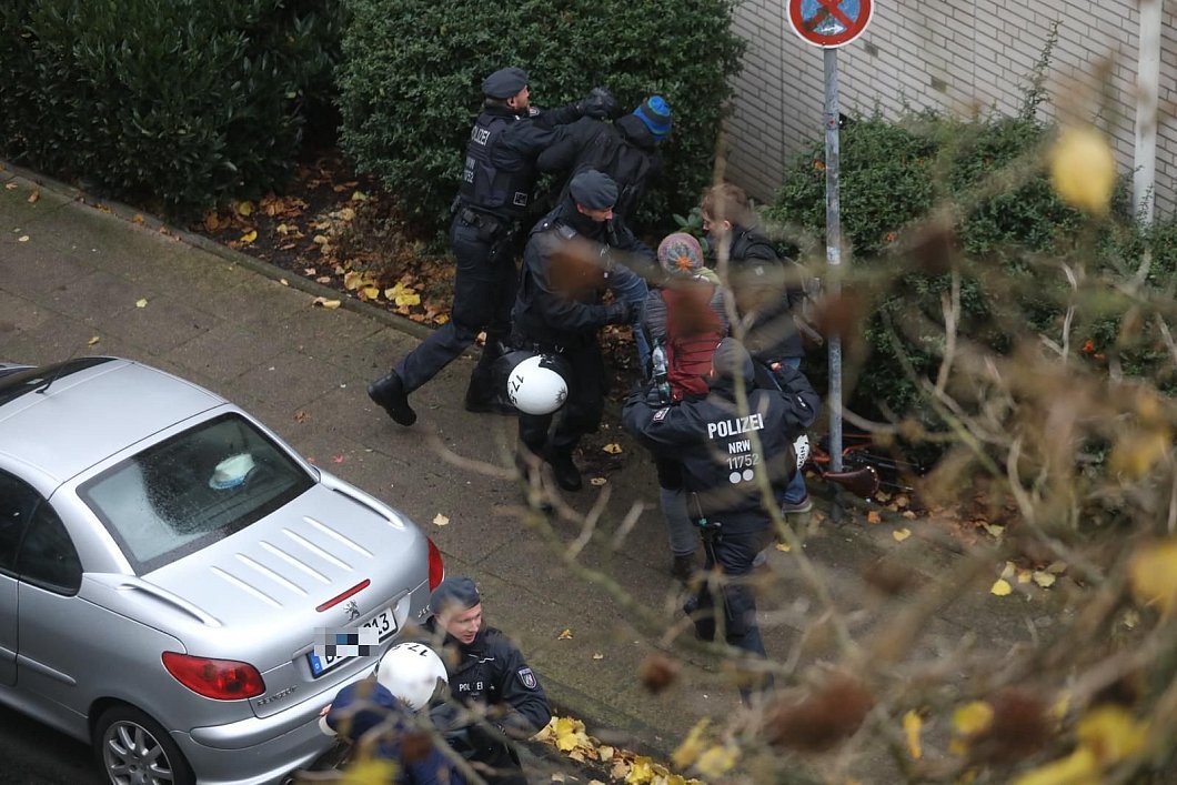 An der Kurfürstenstraße, nahe der Mindener Straße, versuchten gegen 14 Uhr etwa 50 Personen eine Sperrstelle der Polizei zu durchbrechen. Die Polizeikräfte setzten Pfefferspray ein und konnten den Durchbruch verhindern. Sechs Personen wurden in Gewahrsam genommen.