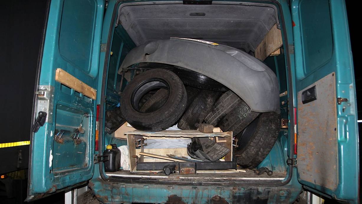 In dem gelandenen Transporter steckten zu allem Übel noch Schrott und alte Reifen. | © Polizei