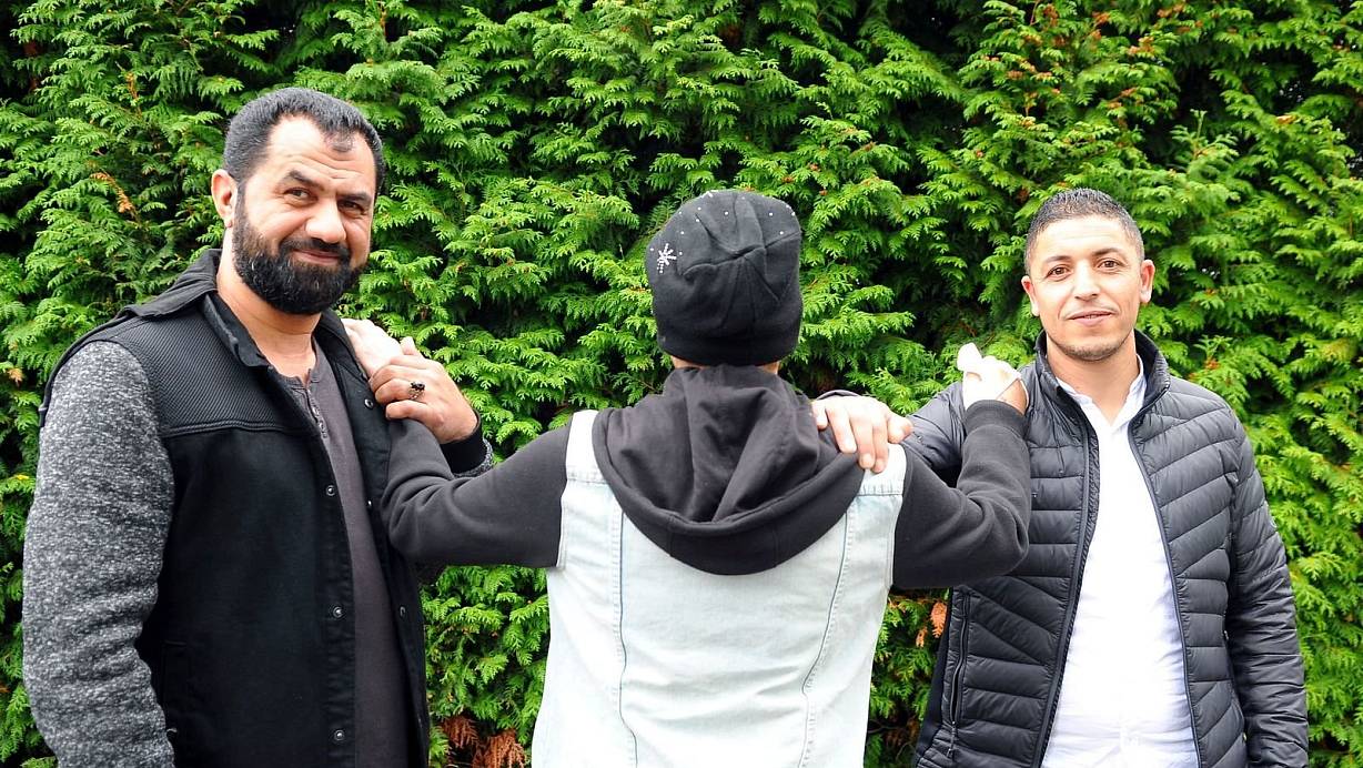 Ghassan Al Yaesiri (l.) und Redouan Elouarghi haben nach der Tat das 43-jährige Opfer wiedergetroffen. Die fünffache Mutter dankte ihren Rettern von tiefstem Herzen. | © Jens Reichenbach