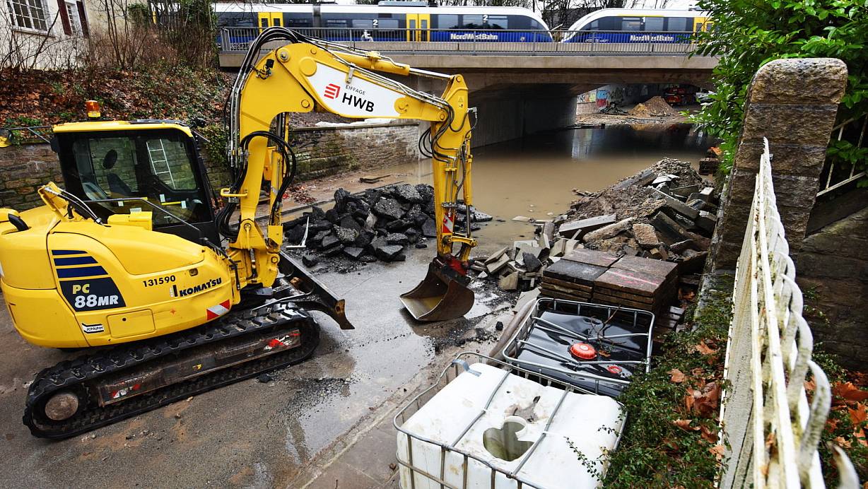 Stillstand auf der langwierigen Bahn-Baustelle. Die Baugrube steht mittlerweile komplett unter Wasser. Der Unmut im Bielefelder Westen ist groß.