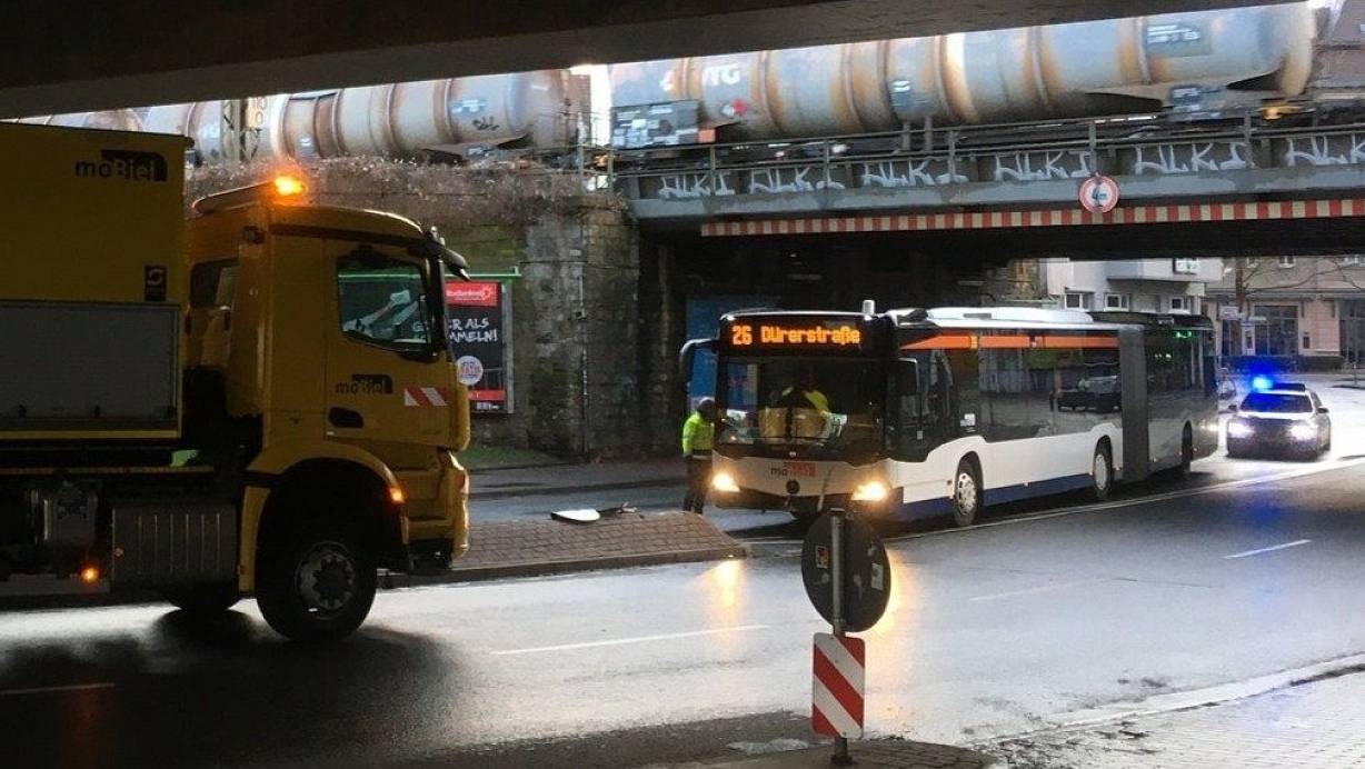 Ein Bus ist am frühen Morgen über eine Verkehrsinsel im Bielefelder Westen gefahren. Außerdem wurden zwei Pkw am Bielefelder Berg auf der A2 in einen Auffahrunfall verwickelt.