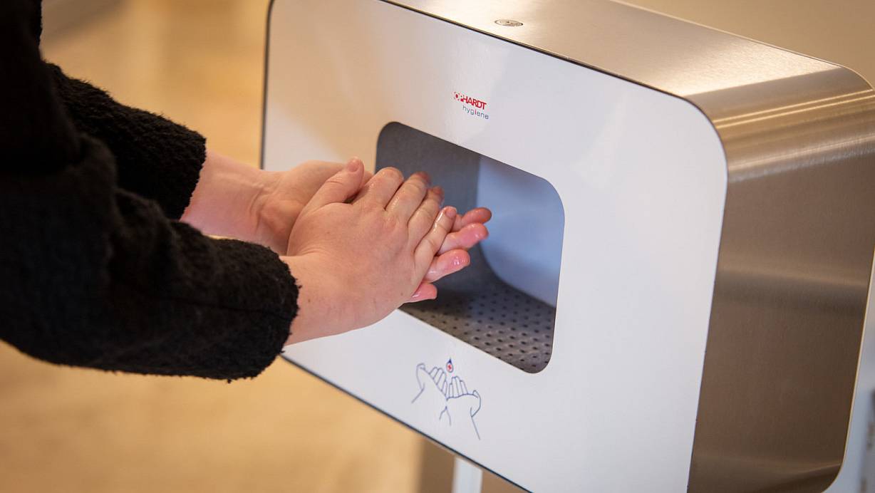 Für Besucher stehen Geräte zum Desinfizieren der Händ in den Eingangsbereichen der Bielefelder Altenheime. | © Niklas Tüns