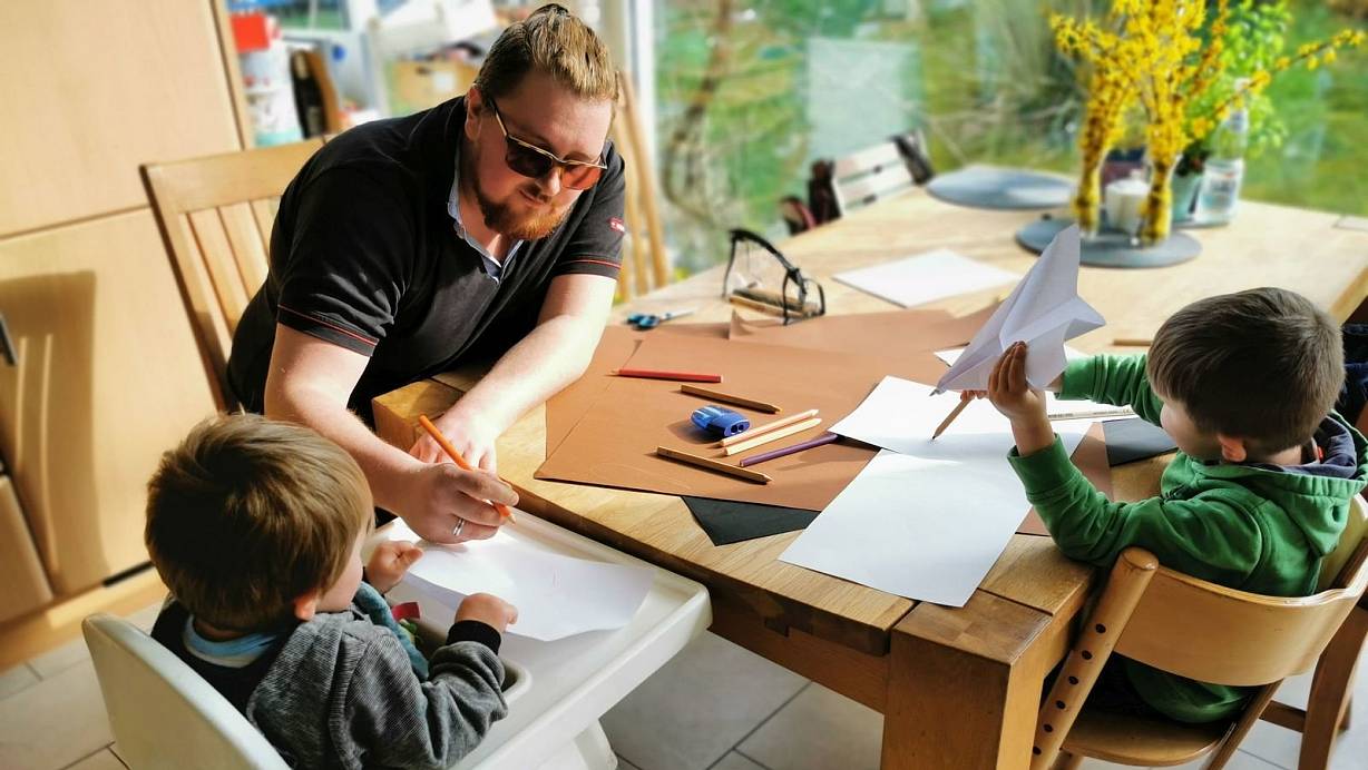 Max Schröder bastelt mit seinen Söhnen Emil Matteo (links) und Fynn Louis. | © Privat