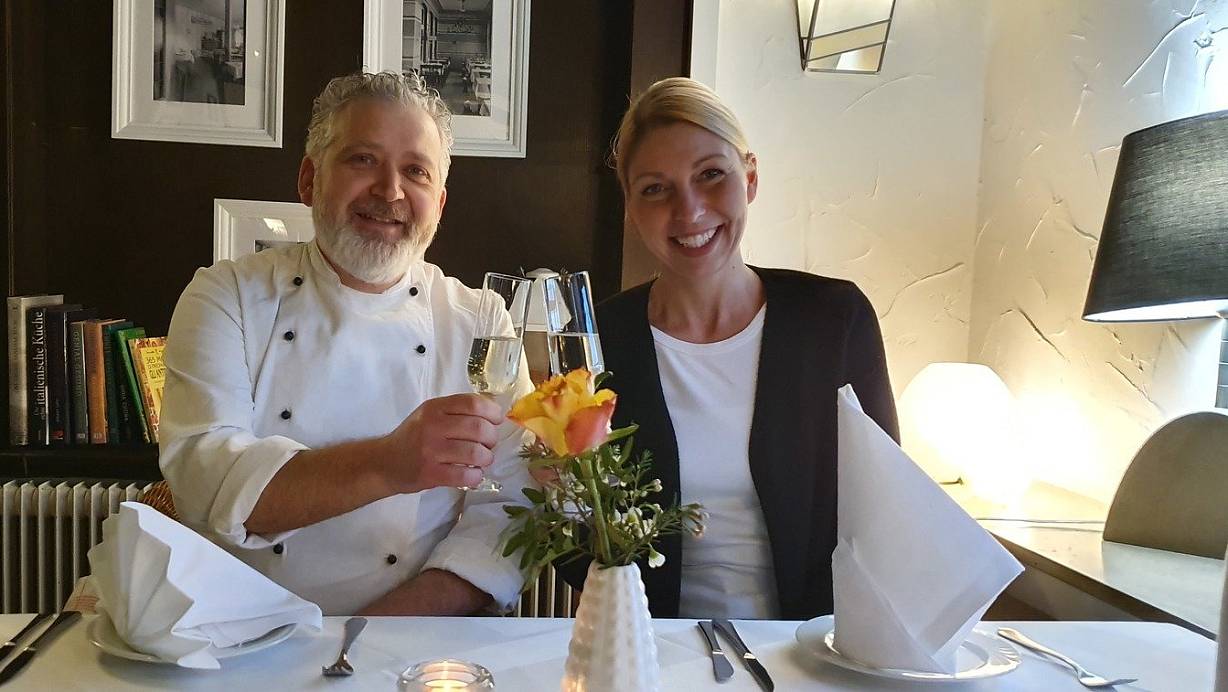 Auf gutes Gelingen: Antonio Ferlaino, Chefkoch des Restaurants Habichtshöhe, und dessen Geschäftsführerin Ramona Schmidt stoßen auf ihre geschäftliche Partnerschaft in den "Taxbäumen" an. | © Privat