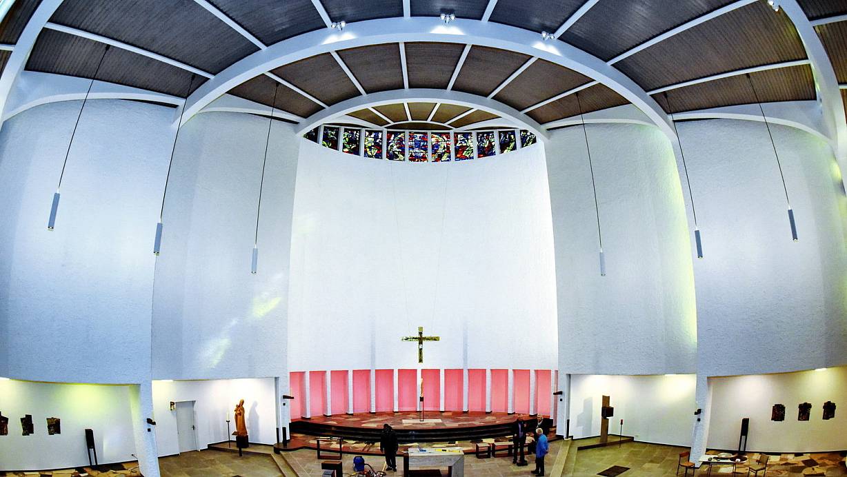 Nach der Renovierung gibt die Thomas-Morus-Kirche ein ganz anderes Bild ab. Licht ist das beherrschende Element, dazu Kirchenkunst mit blauem Titan. Trotz Corona könnten Einblicke bald möglich sein.
