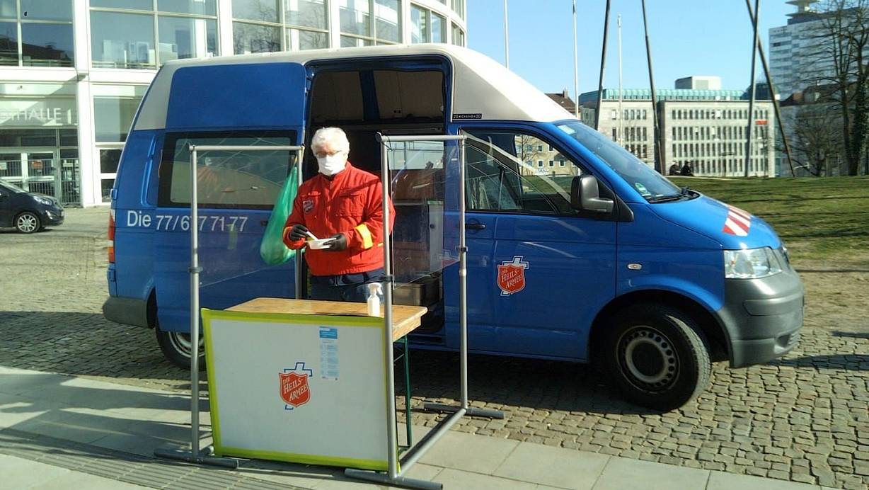 Michael Geymeier hält mit seinem Kältemobil derzeit oft an der "Tüte", um die Menschen dort mit Essen und Getränken zu versorgen. | © Heilsarmee Bielefeld