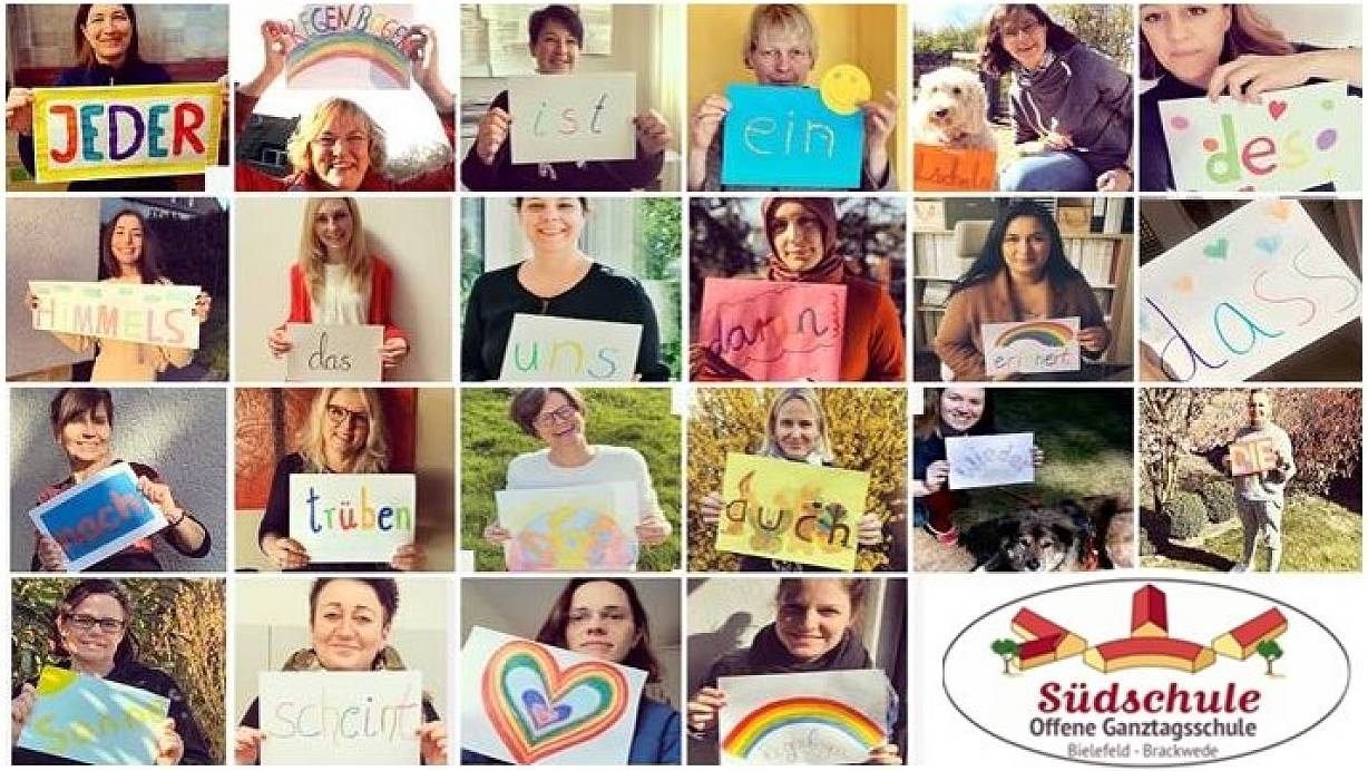 Lehrer der Südschule senden ihren Schülern einen motivierenden Gruß: „Jeder Regenbogen ist ein Lächeln des Himmels, das uns daran erinnern will, dass nach trüben Tagen auch wieder die Sonne scheint.“ | © privat