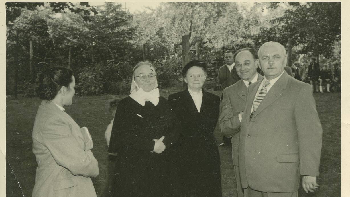 Im Vordergrund Karl Pawlowski. Sein Fahrer ist der dritter von rechts im Hintergrund. Er soll die Weiße Fahne auf der Sparrenburg aufgezogen haben. | © Helga Standop