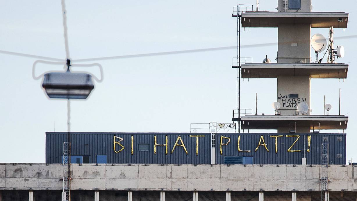 "BI hat Platz" prangt am Telekom Hochhaus. | © privat