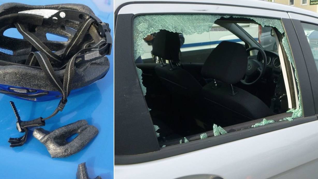 Der ältere Radler blieb von schweren Verletzungen verschont. Sein Helm und die Autoscheibe hingegen wurden schwer in Mitleidenschaft gezogen. | © Polizei
