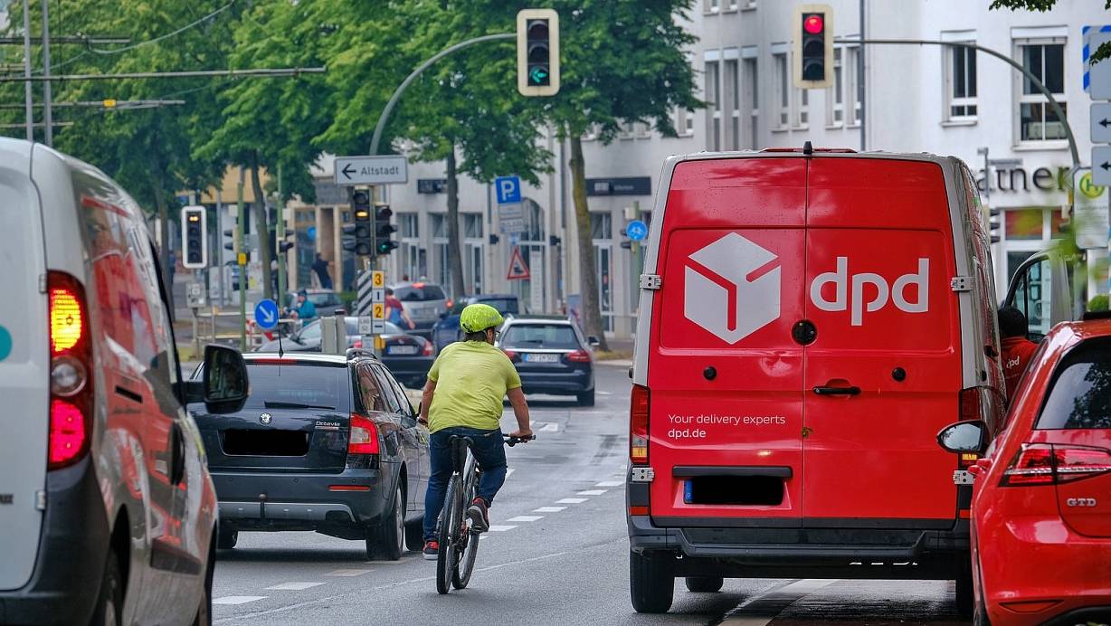 Der Klassiker: Am Niederwall hält ein Paketdienst quer auf dem Radweg, Warnblinker an, und tschüss. Der Radfahrer muss gefährlich ausweichen und in den Autoverkehr. | © Foto: Andreas Zobe/NW