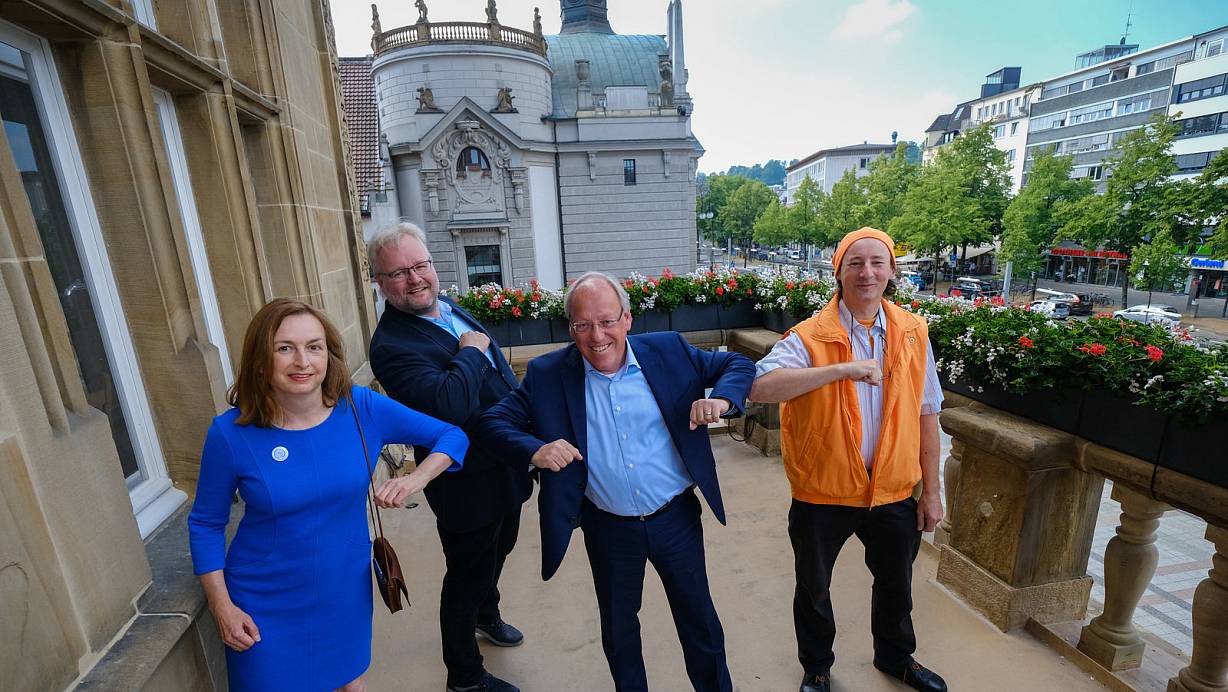 Sie haken sich ein, gehen gemeinsam voran: Claudia Böhm, Michael Schem, Pit Clausen und Pip Cozens. | © Foto: Andreas Zobe/NW