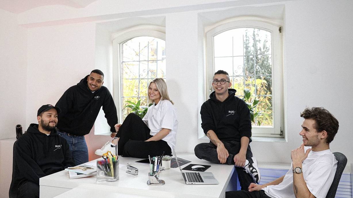 Der Chef ist der jüngste: Noah Kolbe (18, r.) mit einem Teil des "Rize"-Teams in den Agenturräumen unterhalb der Sparrenburg. | © Andre Vorwerk