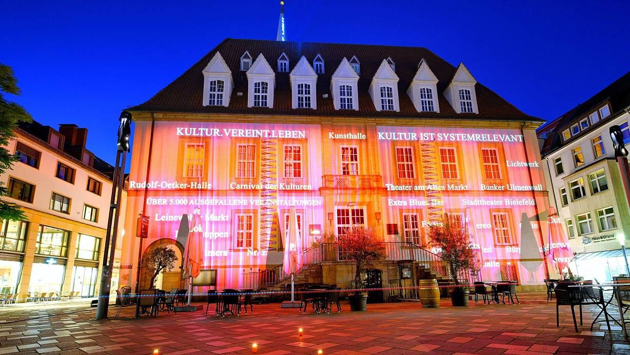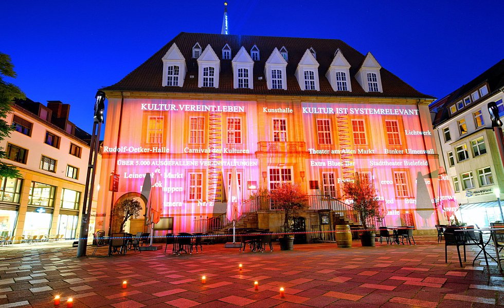 Um 23.55 Uhr (Nach dem Motto „Es ist fünf vor zwölf") leuchteten in Bielefeld zahlreiche Fassaden in Rot. Zudem gab es plastische Installationen, die auf die kritische Lage in der Veranstaltungswirtschaft hinwiesen.