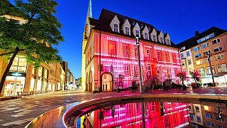 Bielefeld. Die Veranstaltungsbranche hat am Montag bundesweit ein starkes Zeichen gesetzt: Auch in Bielefeld leuchteten zahlreiche Gebäude in Rot. Ein Hinweis der Branche auf ihre verzweifelte Lage.