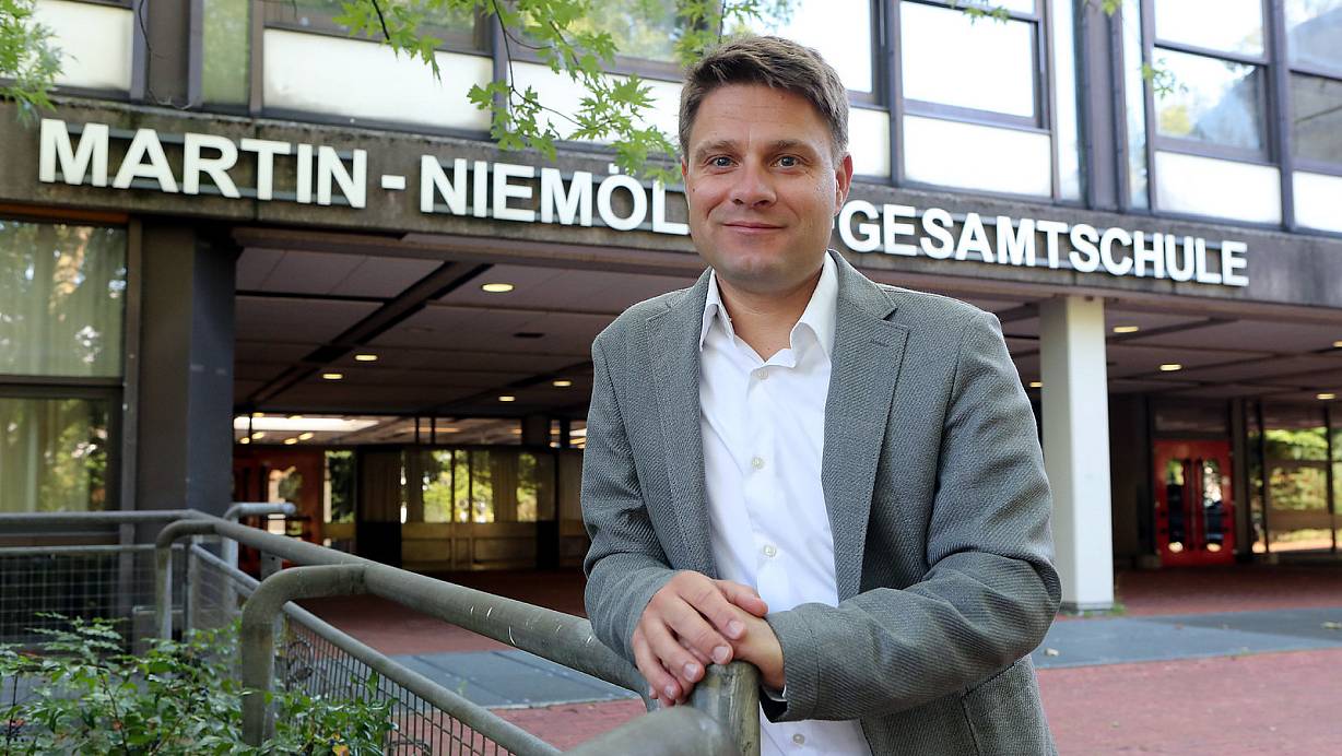 Frederik Suchla wird die Martin-Niemöller-Gesamtschule kommissarisch leiten. Er hat einiges vor der Brust: Das Gebäude wird abgerissen, an zwei Standorten wird neu gebaut. Spannend wird es für ihn auch im September.