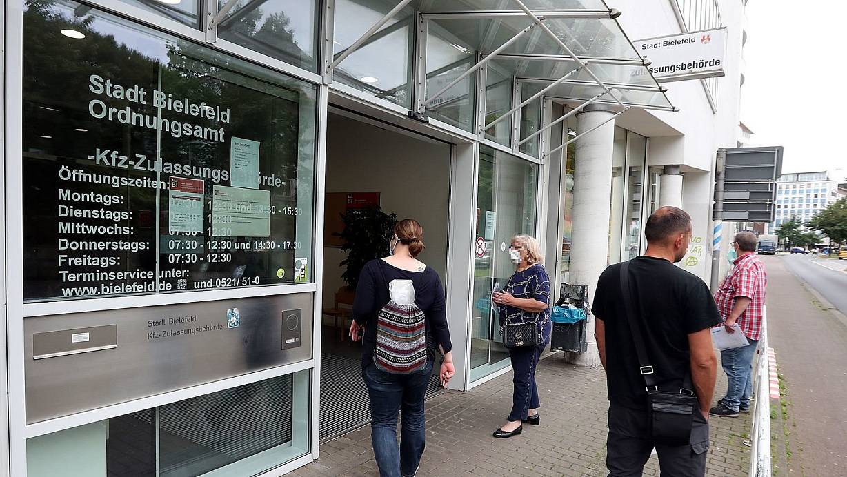 Bürger warten vor der Kfz-Zulassungsstelle in der Paulusstraße. | © Wolfgang Rudolf