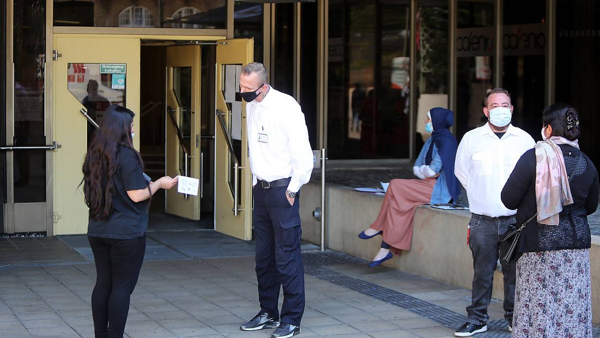 Das Rathaus ist ab kommender Woche wieder geöffnet. Marcel Bruns (links) und Maximilian Heyer von der MSS Security kontrollieren derzeit noch, ob die Besucher auch tatsächlich einen Termin haben. Ab Montag wird das gelockert. | © Wolfgang Rudolf