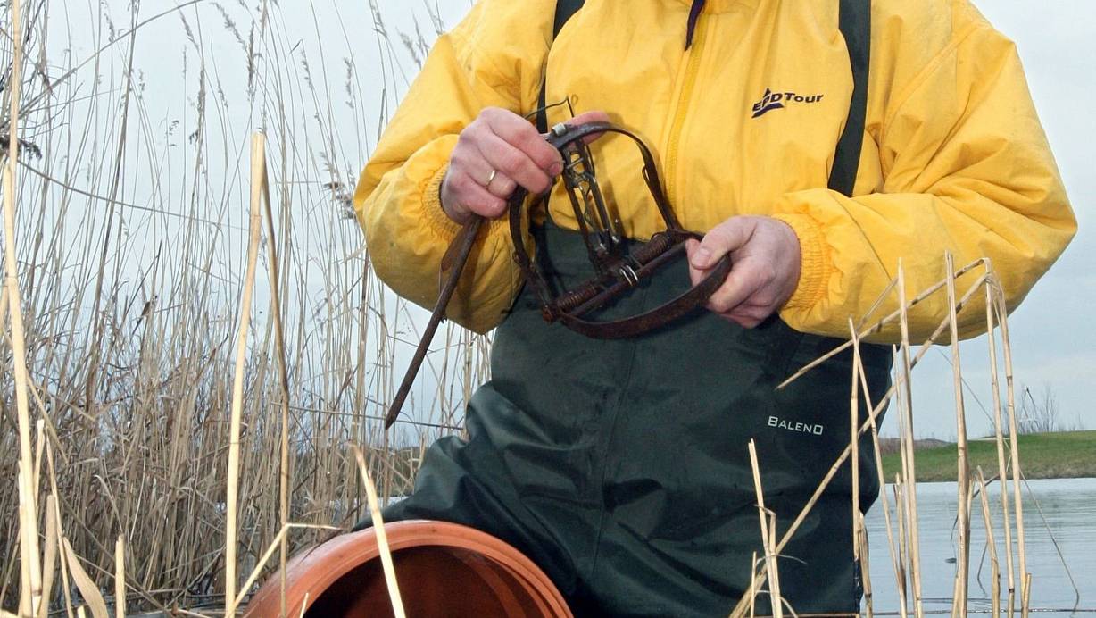 Nagetier-Falle: Eine solche Klappfalle fanden Spaziergänger im hohen Gras auf einem Feld in Bielefeld-Senne. Sie ist dafür da, größere Nagetiere wie Bisamratten zu fangen. | © Symbolfoto: picture-alliance/ dpa