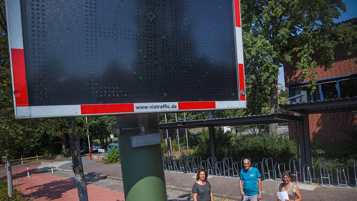 Mit Lachen reagiert der Tacho auf Tempo 28. Alexandra Seifert-Barz, Bernd Küffner und Bärbel Mörchen freut es. | © Sarah Jonek