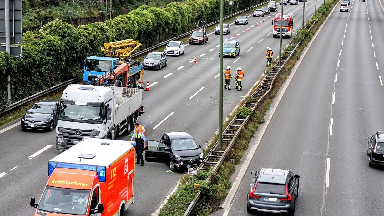 Lastwagen touchiert Kleinwagen und Letzterer dreht sich und landet quer in der Leitplanke