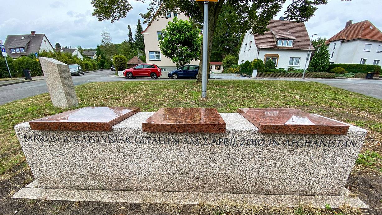 Auf diesem kleine Platz im Queller Breedenviertel  steht bereits eine Bank mit dem Namen des Hauptgefreiten Martin Augustyniak.  | © Andreas Zobe