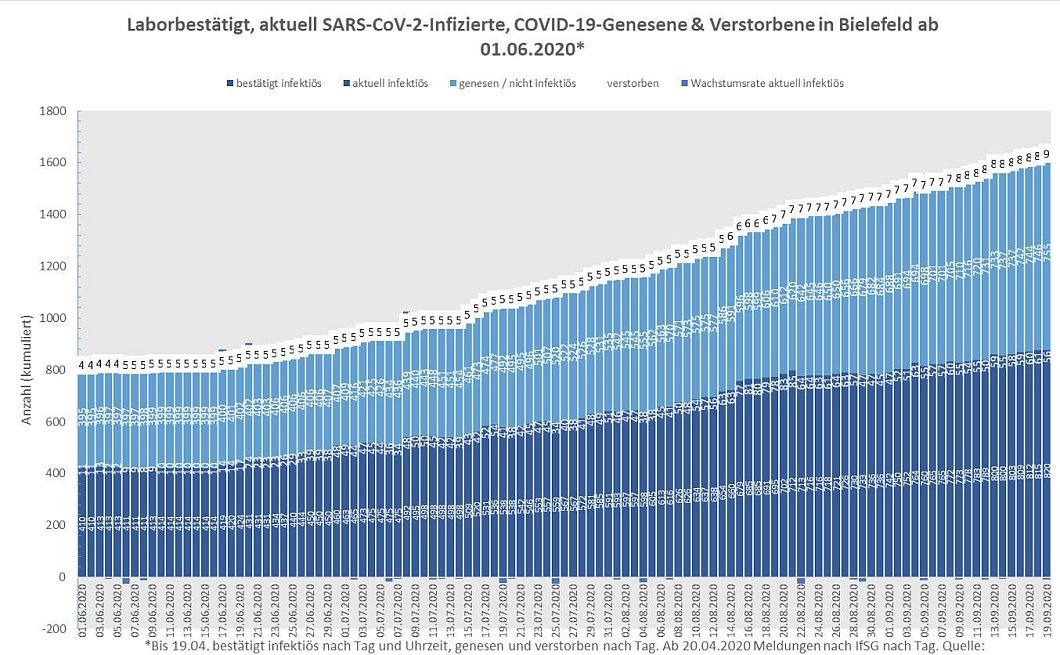 In der Stadt Bielefeld gibt es leider einen weiteren Todesfall – eine 94 Jahre alte Frau ist in Zusammenhang mit Corona gestorben. In der Stadt Bielefeld gibt es damit seit Beginn der Pandemie 9 Corona-Tote.