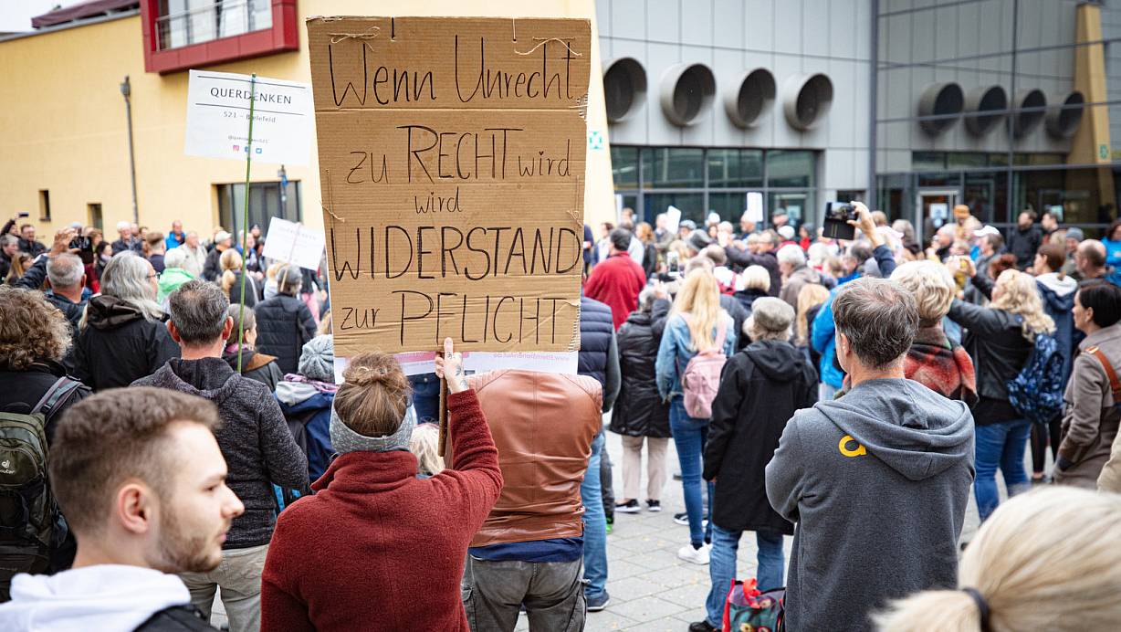 Etwa 300 Leute kamen zur Corona-"Querdenker"-Demo. | © NW