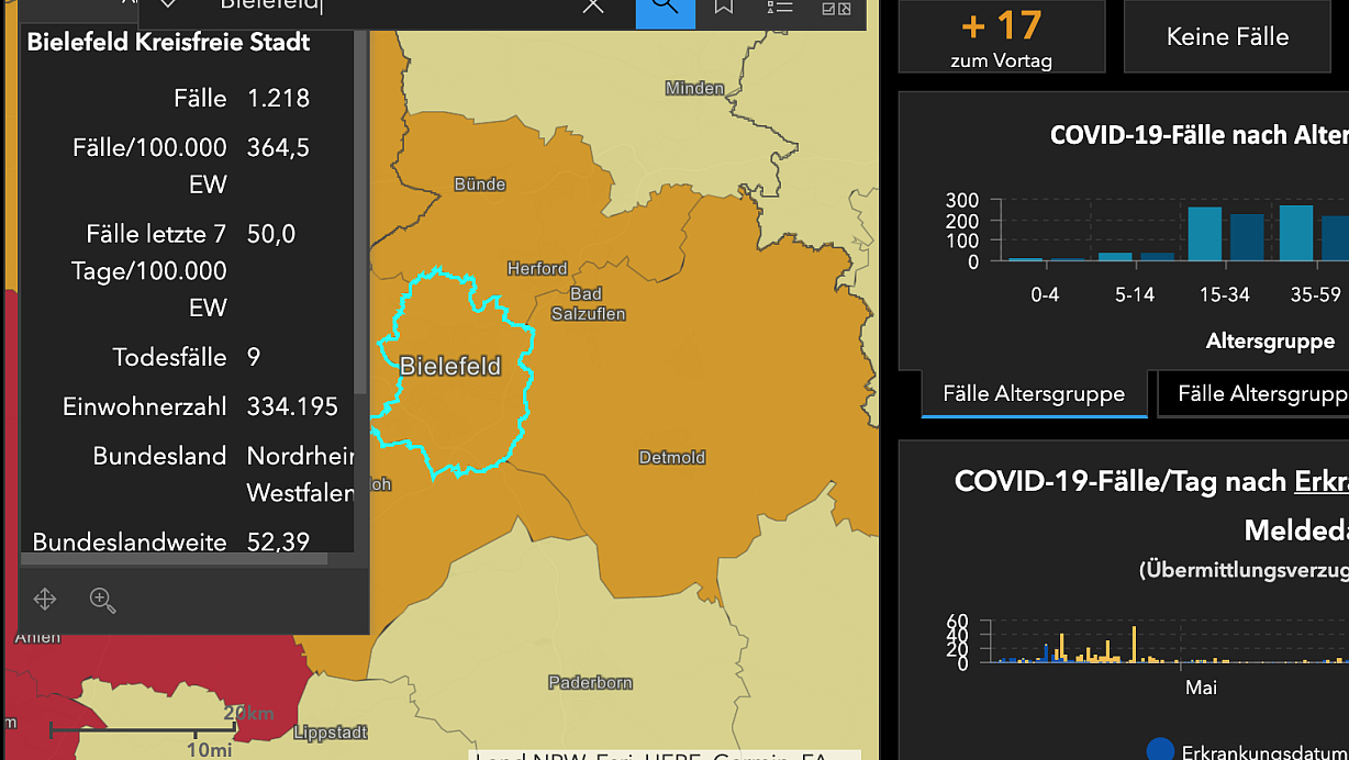Juristen der Stadt Bielefeld legen die ab Samstag gültige neue Corona-Schutzverordnung NRW so aus, dass der Inzidenzwert größer als 50 sein muss für Maßnahmen. Somit wäre Bielefeld kein Risikogebiet mehr.