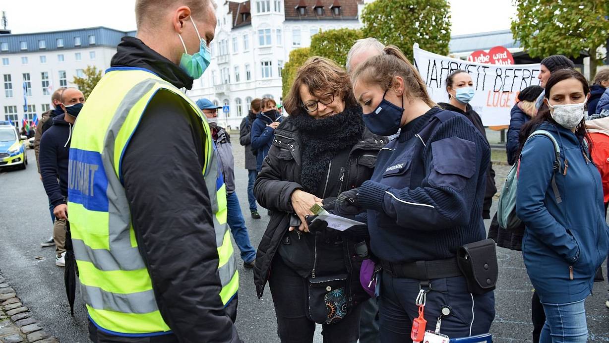 Mitarbeiter des Ordnungsamts kontrollierten Demo-Teilnehmer. | © NW