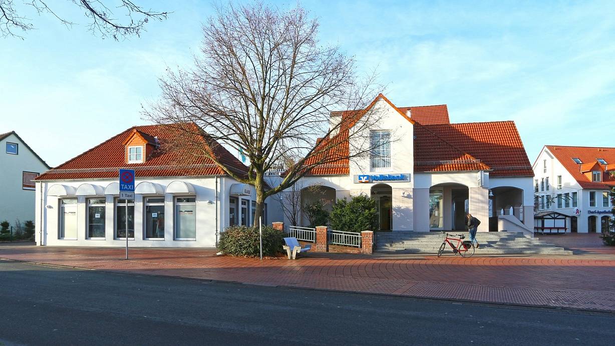 Die Immobilie am Jöllenbecker Marktplatz soll für mehr als zwei Millionen Euro verkauft werden. | © Christian Zeidler/Volksbank