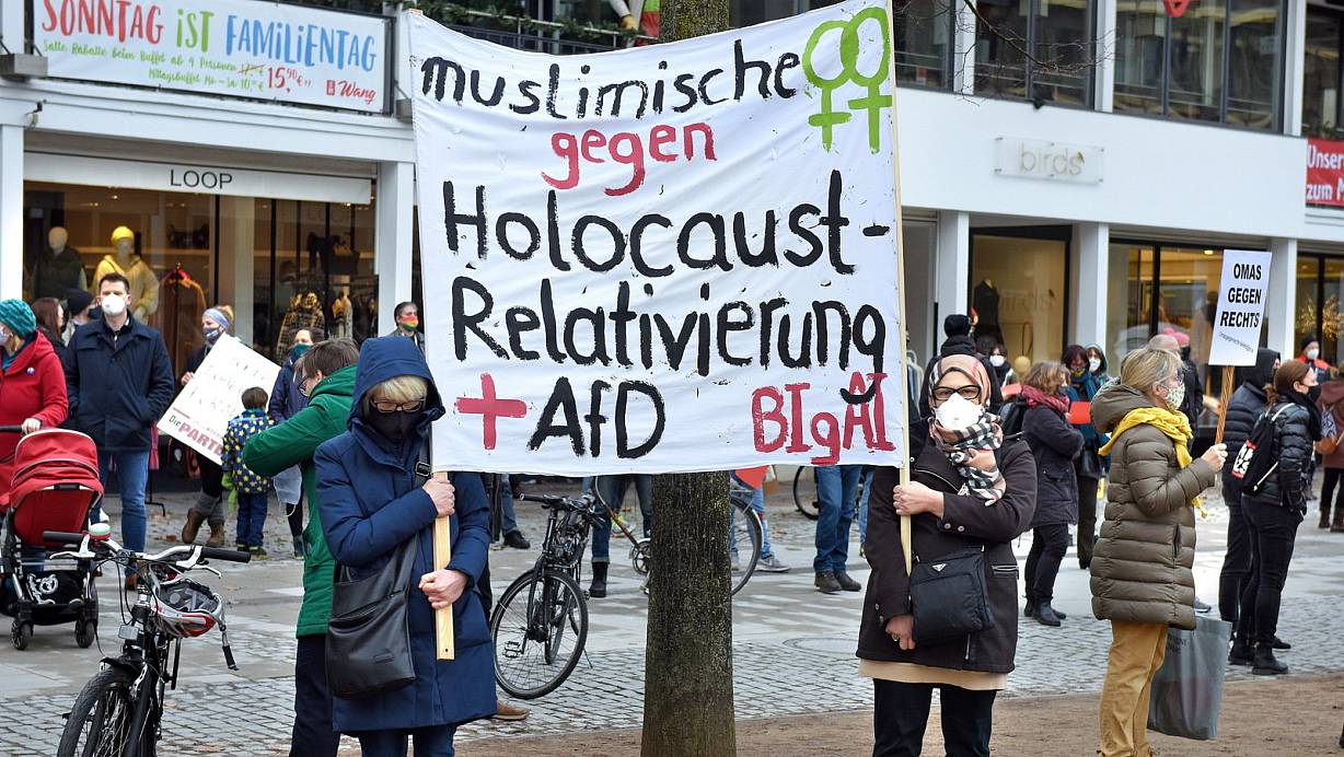Zum "Gedenken der Opfer islamistischer Gewalttaten" halten Anhänger der AfD in der Bielefelder City eien Mahnwache ab. Das Bündnis gegen Rechts findet das heuchlerisch.