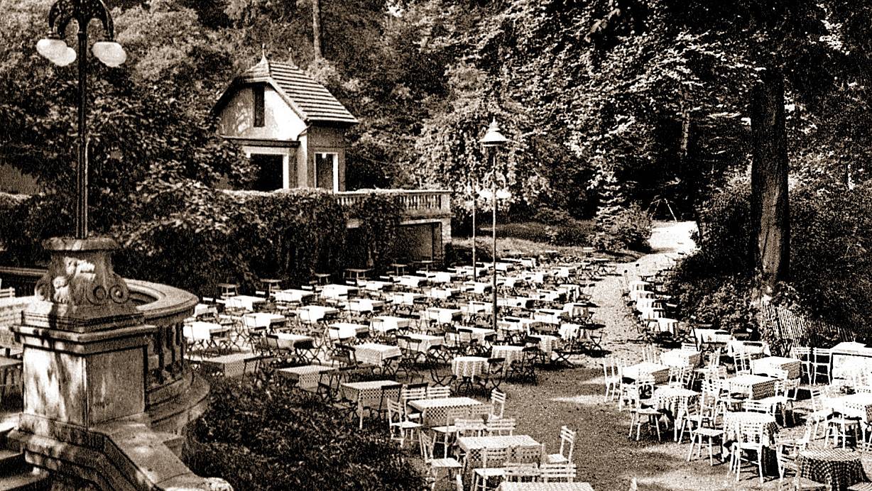 Die große Terrasse: Unter dem Rondell weitete sich die große Außenfläche aus, auf der Tische und Stühle zum Verweilen einluden. | © Stadtarchiv