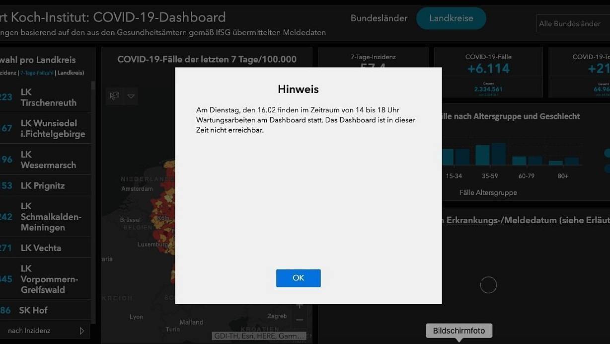 Warum konnte Bielefeld wieder keine aktuellen Zahlen melden - alle anderen Kreise aber schon? | © RKI-Dashboard
