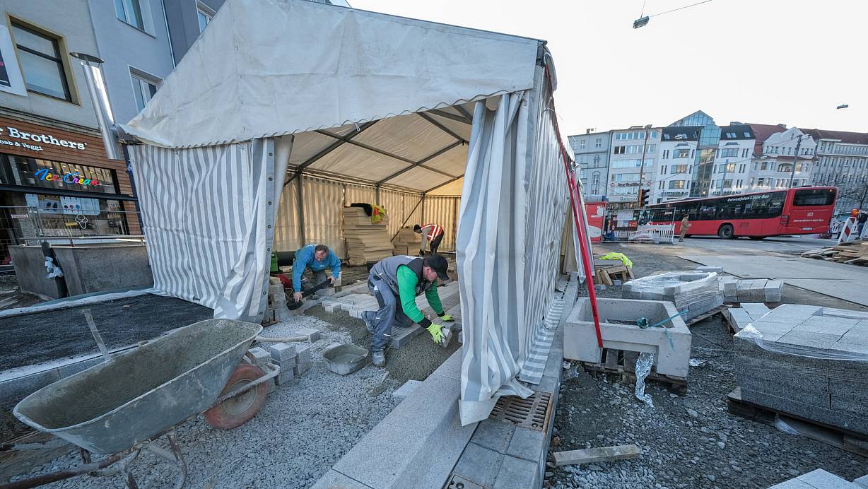 Die neuen Dächer für die Jahnplatz-Bushaltestellen kommen aus Tschechien. Montiert werden sollen sie von einem Bautrupp aus dem Land, das derzeit wegen hoher Corona-Zahlen als Hotspot gilt.