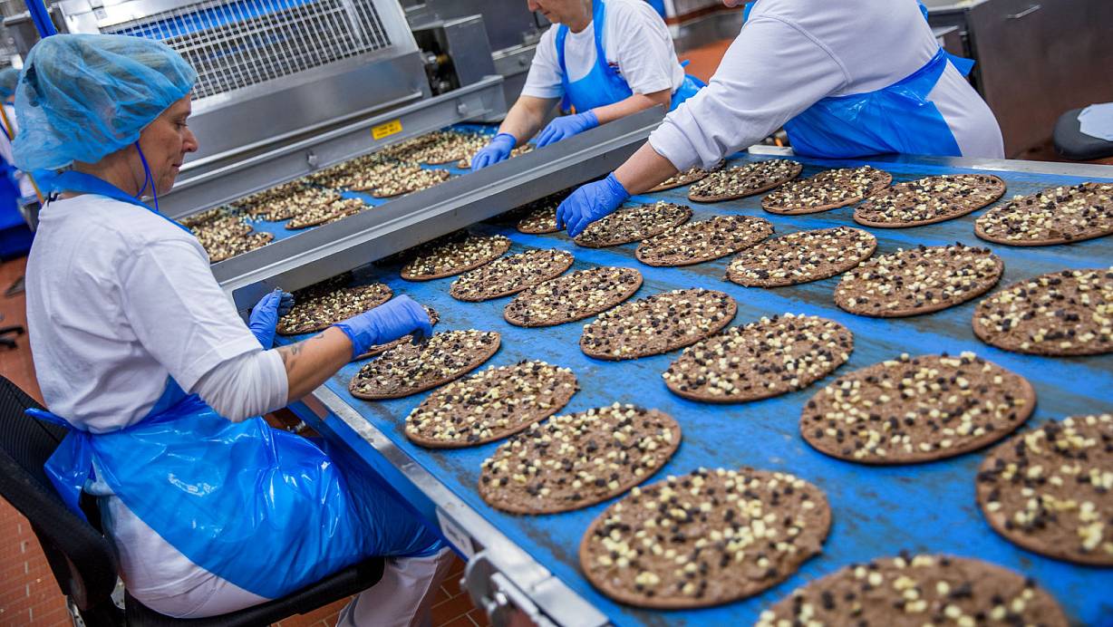 Gescheiterter Versuch: Die süße Schokoversion, hier bei der Produktion in Wittenburg (Mecklenburg-Vorpommern), mit kakaohaltigen Boden mit Schokoladensplittern, verschwand schnell wieder vom Markt. | © Jens Büttner