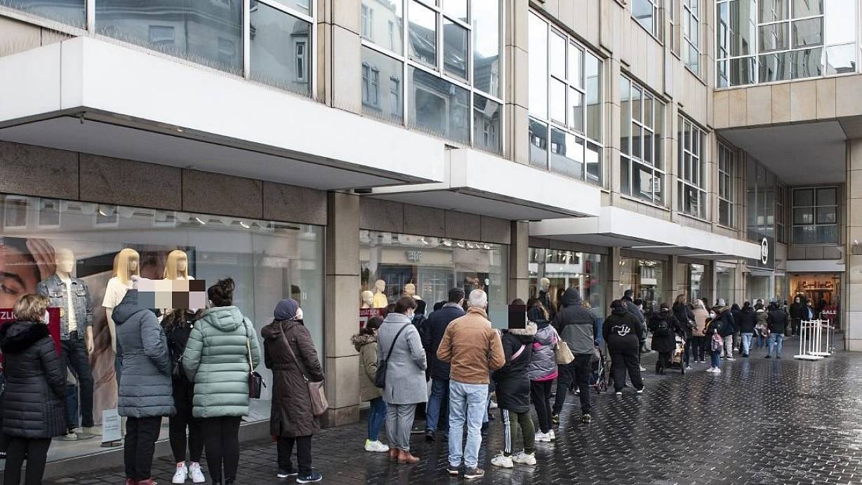 Shopping-Ansturm trotz Corona: Lange Schlangen in der Bielefelder City