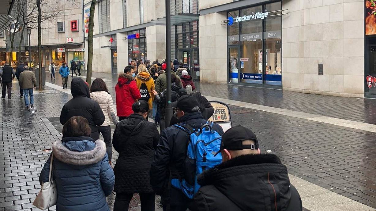 Die Läden haben erstmals in diesem Jahr an einem Wochenende ohne Termine geöffnet. Entlang der Bahnhofstraße bilden sich Schlangen. Ein namhaftes Geschäft kehrt freiwillig zu "Click&Meet" zurück.