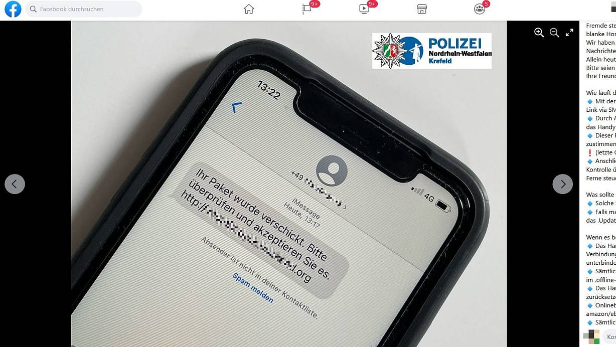 Auf Facebook warnt die Polizei NRW. | © Screenshot: Facebook / Polizei Krefeld