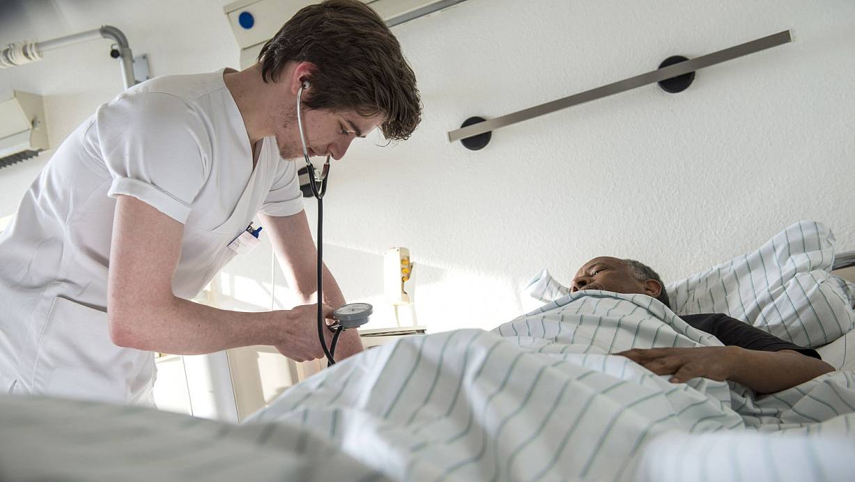 Krankenpflegeschüler misst den Blutdruck eines Patienten. | © Heike Lyding