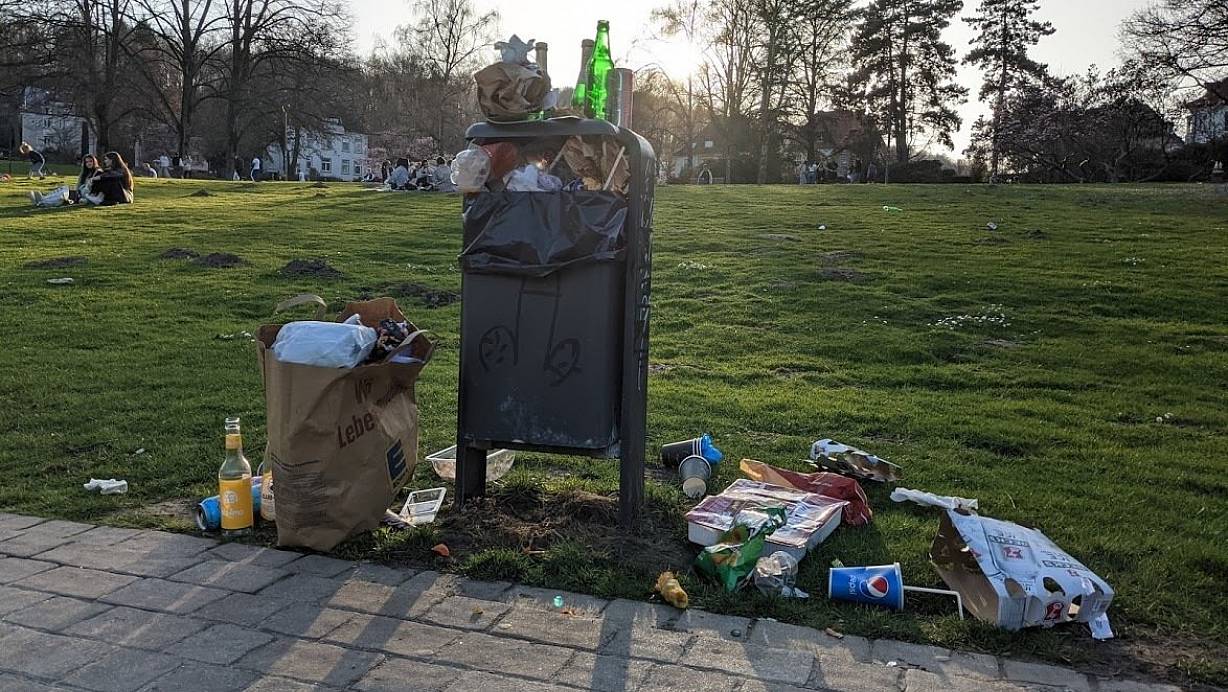 Im Bürgerpark quellen die Abfalleimer über. | © Julia Lichtnecker