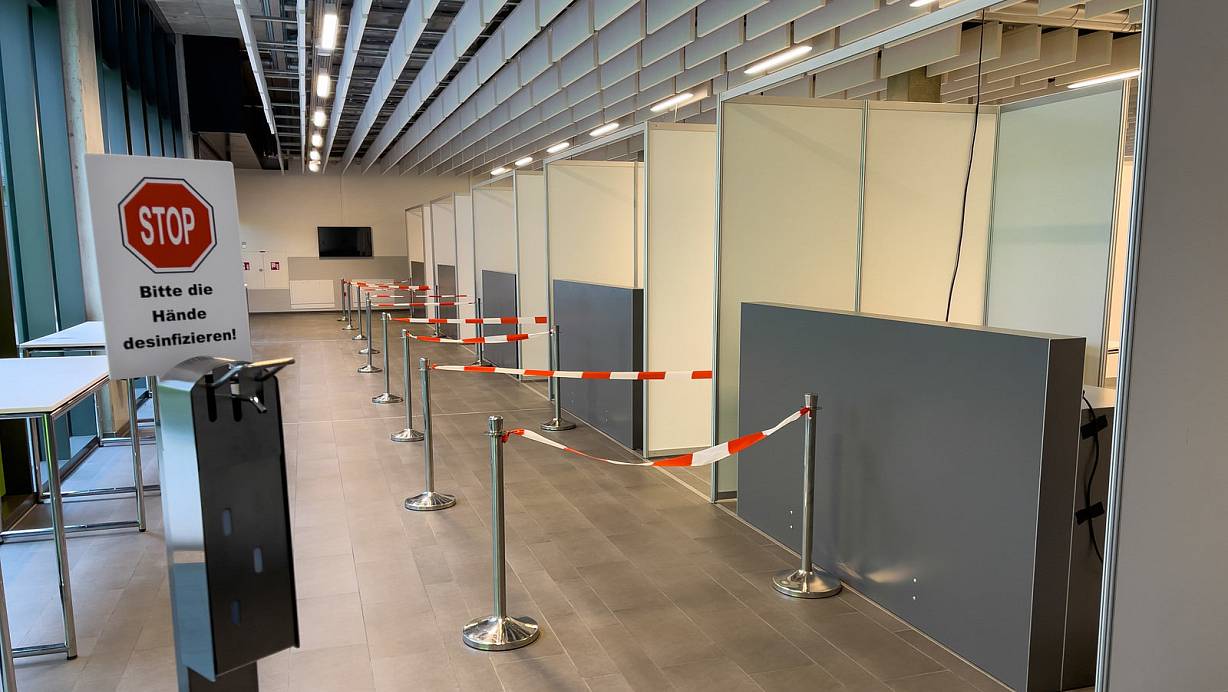 Das Testzentrum in der Uni ist im Aufbau. | © Andreas Zobe