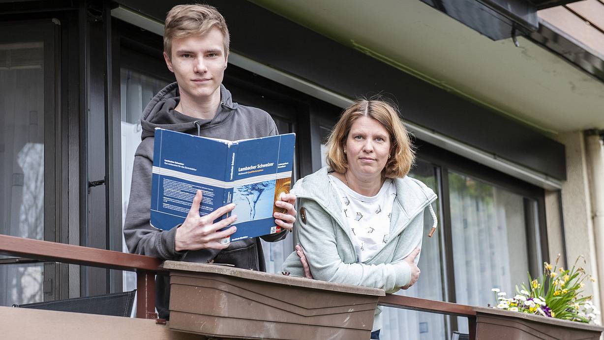 Robin (18), Abiturient am Max-Planck-Gymnasium, lernt jetzt für seine nächste Abiturklausur Mathe. Während ihr Sohn aktuell nur mit Ausnahmegenehmigung die Wohnung verlassen darf, ist Mutter Monika K. als Erstkontakt nicht in Quarantäne. | © Joerg Dieckmann