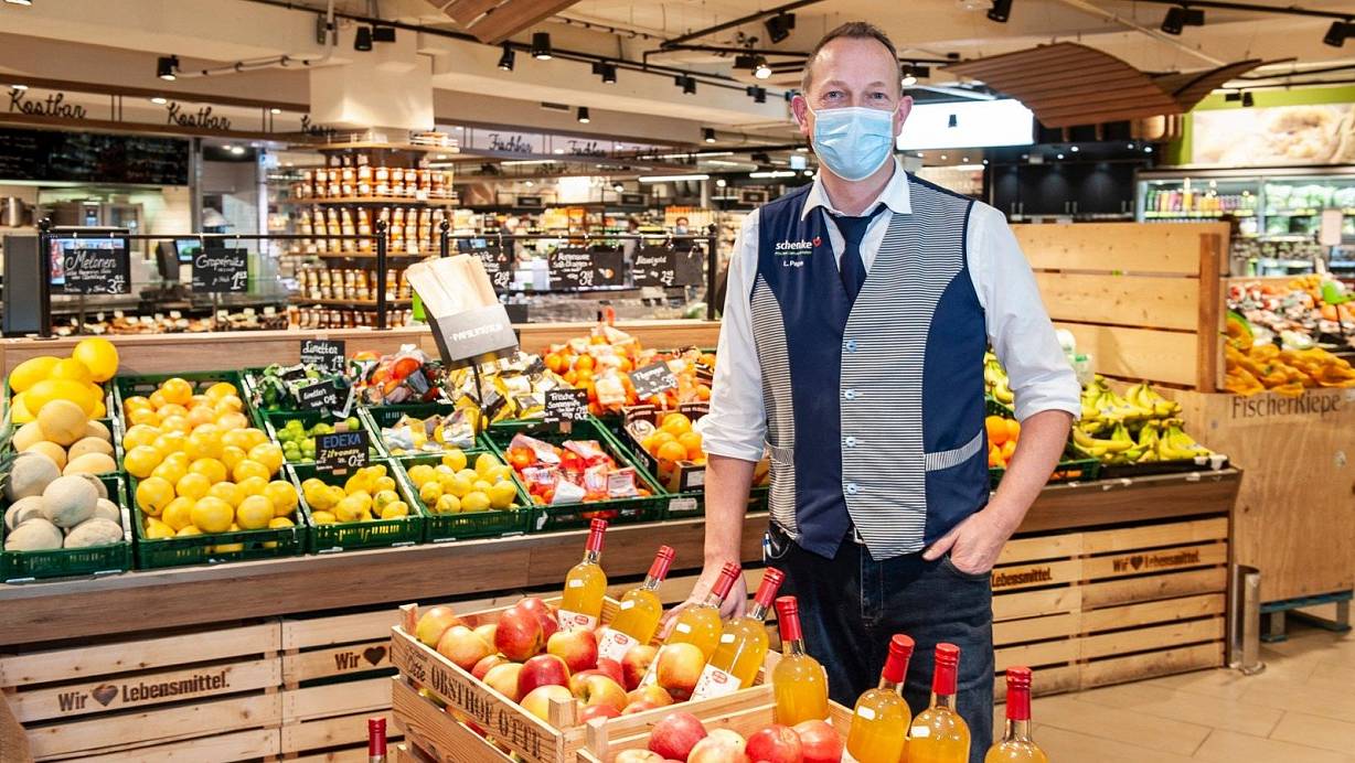 Lars Pape leitet den Edeka Schenke an der Engerschen Straße. Die Kunden kommen öfter als sonst, sagt er. | © Jörg Dieckmann