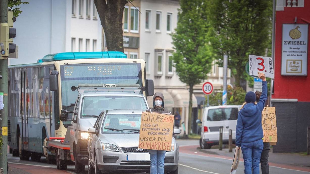 Klimaaktivisten von Extinction Rebellion blockieren jeweils für drei Minuten diverse Straßenkreuzungen in der Stadt. | © jonek.fotografie.de