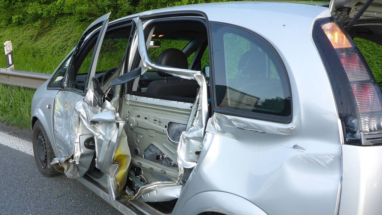 Der silberne Opel Meriva war nach dem Kontakt mit dem Lkw nicht mehr fahrbereit. Der Fahrer kam ins Krankenhaus. | © Polizei